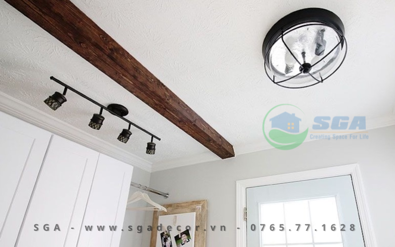- Sử dụng đèn chiếu sáng để làm nổi bật không gian xung quanh, giúp giảm cảm giác nặng nề từ xà ngang.